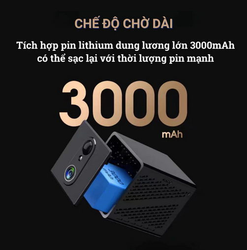 Dùng pin 2400mAh theo máy quay liên tục 4-6 giờ (Kết nối sạc giúp bạn quay 24/24).